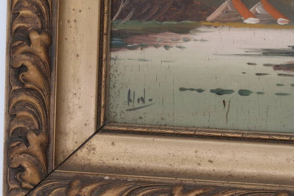 Voeg een vleugje rust en charme toe aan je interieur met dit prachtige schilderij van een onbekende kunstenaar. Dit meesterwerk, geschilderd met olieverf op een houten paneel, toont een idyllisch huisje aan het water, omringd door de serene schoonheid van de natuur. De zachte kleuren en rijke texturen brengen een gevoel van kalmte en harmonie in elke ruimte, waardoor het een perfecte aanvulling is voor elke woon- of werkomgeving.