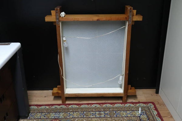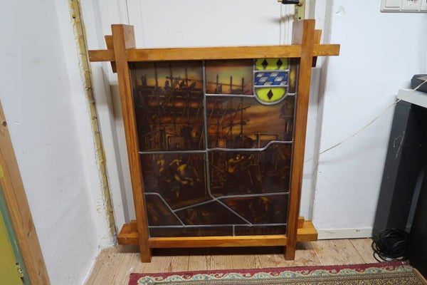 Uniek historisch object: dit glas-in-lood paneel, uitgevoerd door Bouwbedrijf Van de Laan in oktober 1977, is een prachtig voorbeeld van traditioneel vakmanschap. Het paneel is voorzien van achtergrondverlichting, waardoor de kleuren en details van het glas prachtig tot hun recht komen. Alles werkt naar behoren.