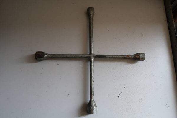 Stevige kruissleutel, voorzien van de maten 17 mm, 19 mm, 22 mm en 13/16 inch. Ideaal voor het los- en vastdraaien van wielmoeren en bouten bij auto’s, aanhangwagens en diverse voertuigen.