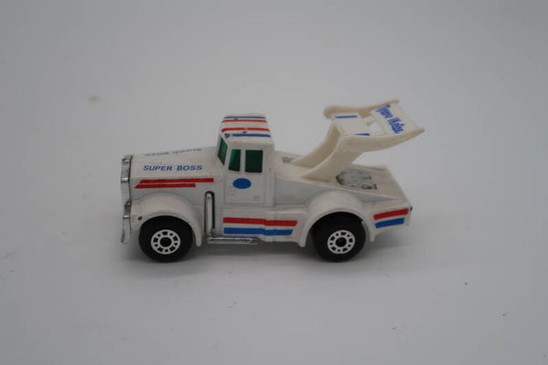 Stoere Hot Wheels Super Bos in wit, schaal 1:64. Dit klassieke diecast model is stevig uitgevoerd en heeft een opvallend ontwerp, waardoor het een must-have is voor Hot Wheels verzamelaars en autoliefhebbers.