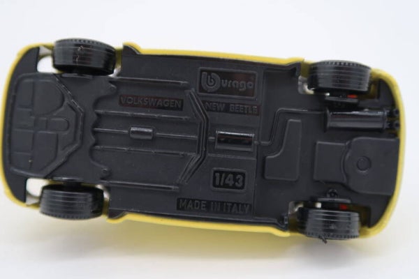 Schaalmodel van de Volkswagen Kever, geproduceerd door Burago, schaal 1:43. Dit betreft de gele uitvoering.
